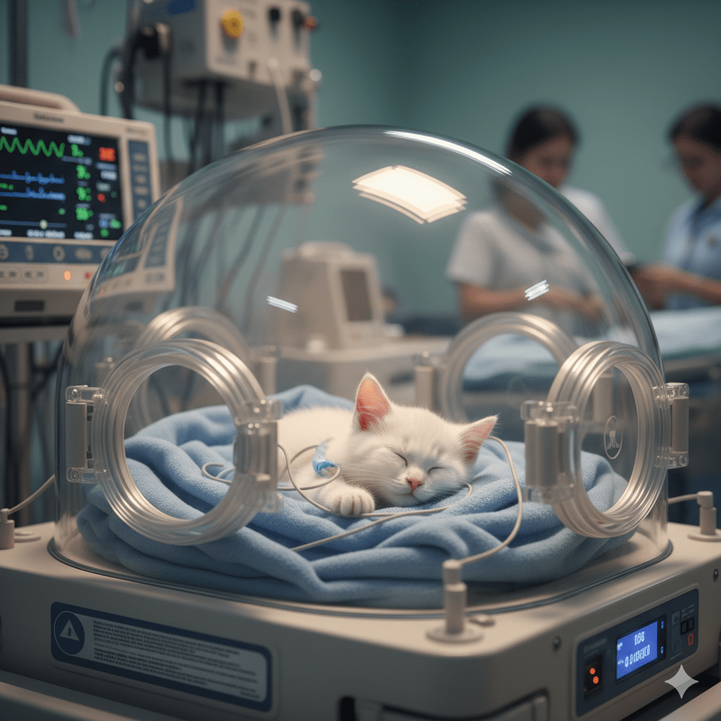 炒飯仔細一看,小貓的雙眼緊閉,表情確實是很痛苦的樣子,而在小琳撫摸的地方也很明顯有個不自然的隆起。