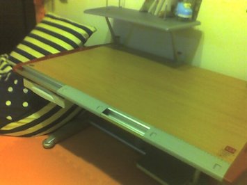 其實這書桌還真沒什麼,不就是一塊木板加上兩隻腳,厲害的地方也只不過是可以調整高度