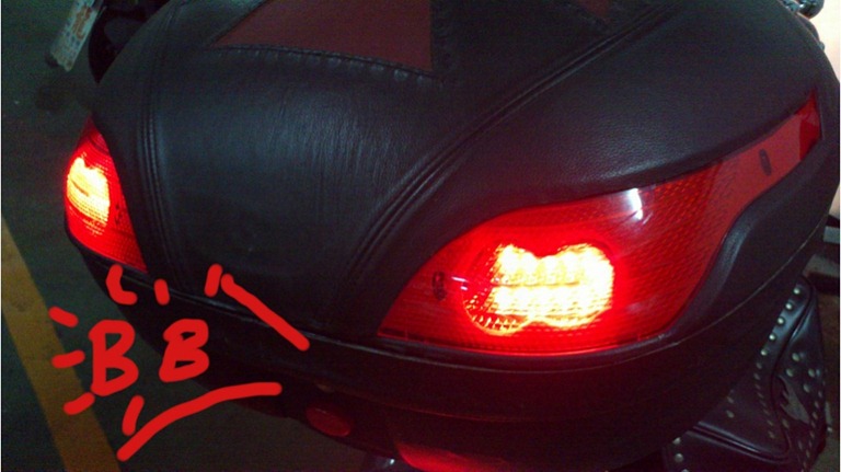 真正的重點來了,箱子的煞車燈搞亮了,才發現大V的煞車燈根本不會亮