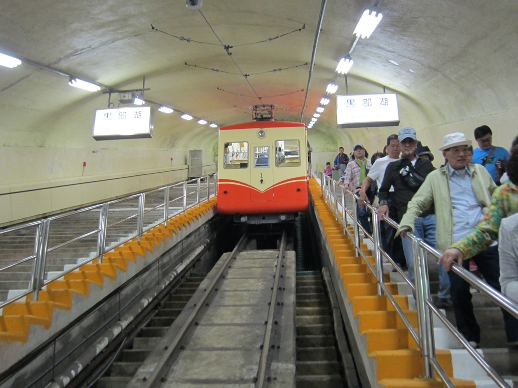至於從黑部平到黑部湖那段,坐的也是這種軌道纜車,而且..嘿嘿,是往下走的