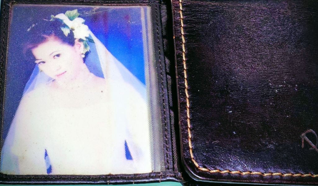 另外,在他的皮夾裡也擺了一張縮小版的新娘照,不管在小芳生前還是生後都是如此。